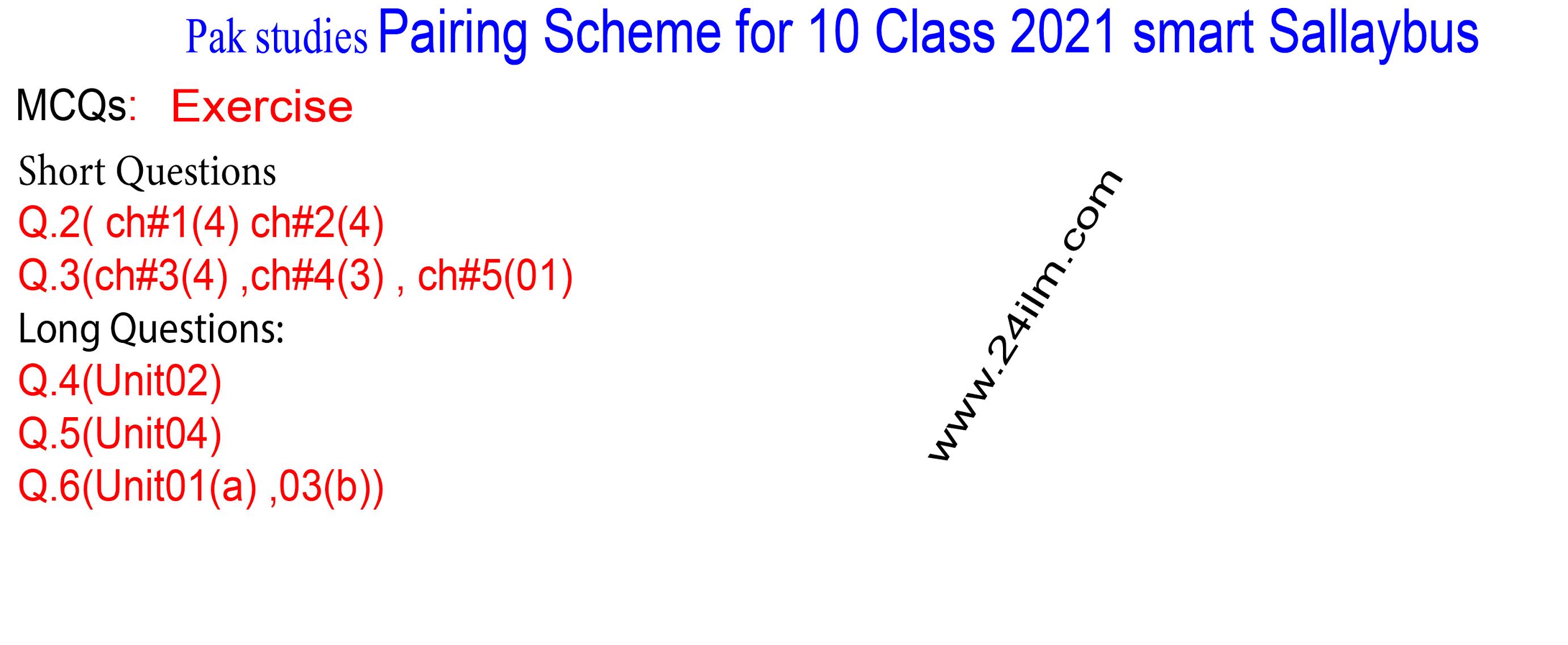 24ilm provides Matric 10th Class All subjects Pairing Scheme, Guess Paper, Notes, Past Papers